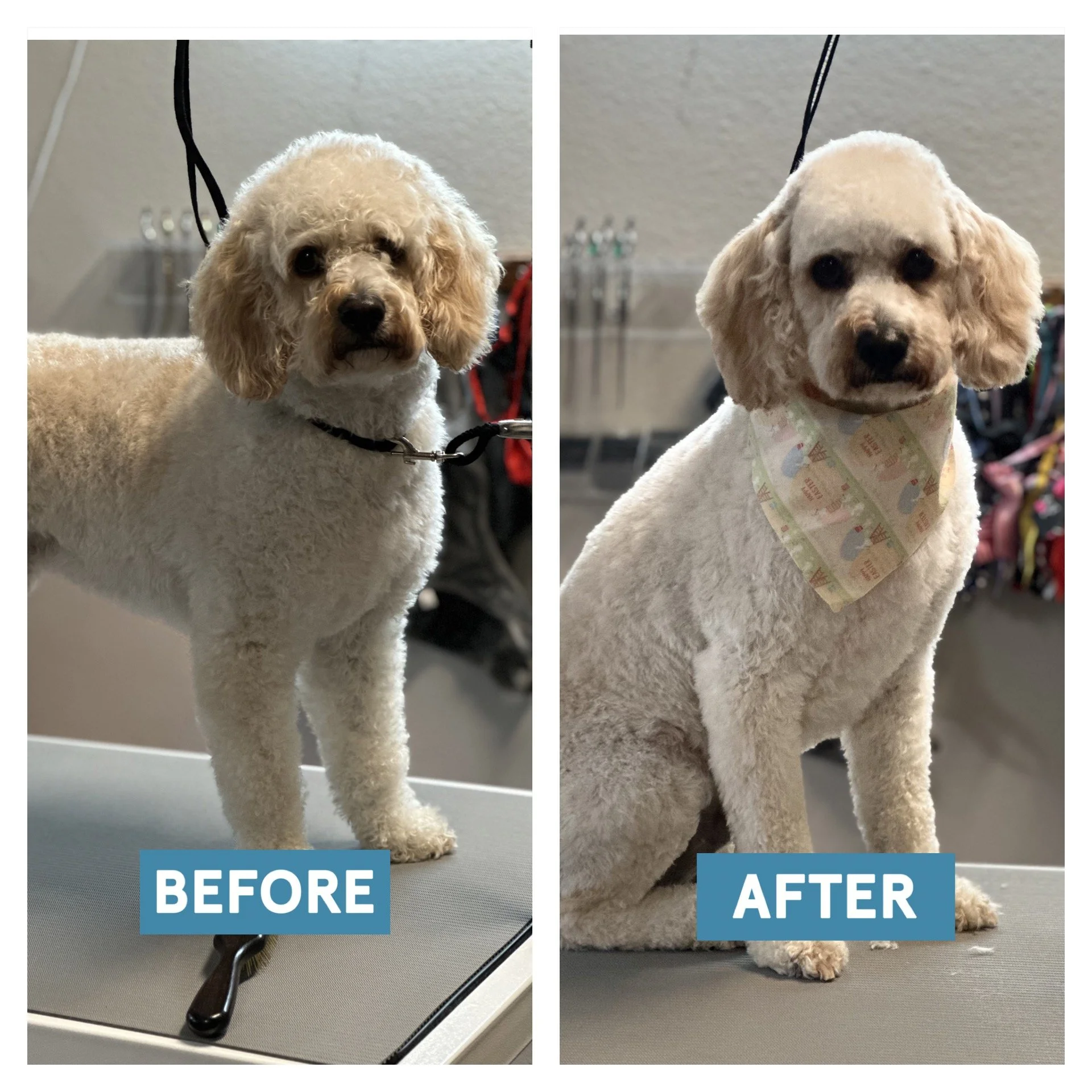 Grooming Gallery Before and after of extremely matted Goldendoodle Before and after with mohawk Before and after: Yorkie Slide 1 Slide 1 (current slide) Slide 2 Slide 2 (current slide) Slide 3 Slide 3 (current slide) Slide 4 Slide 4 (current slide) Slide 5 Slide 5 (current slide) Slide 6 Slide 6 (current slide)